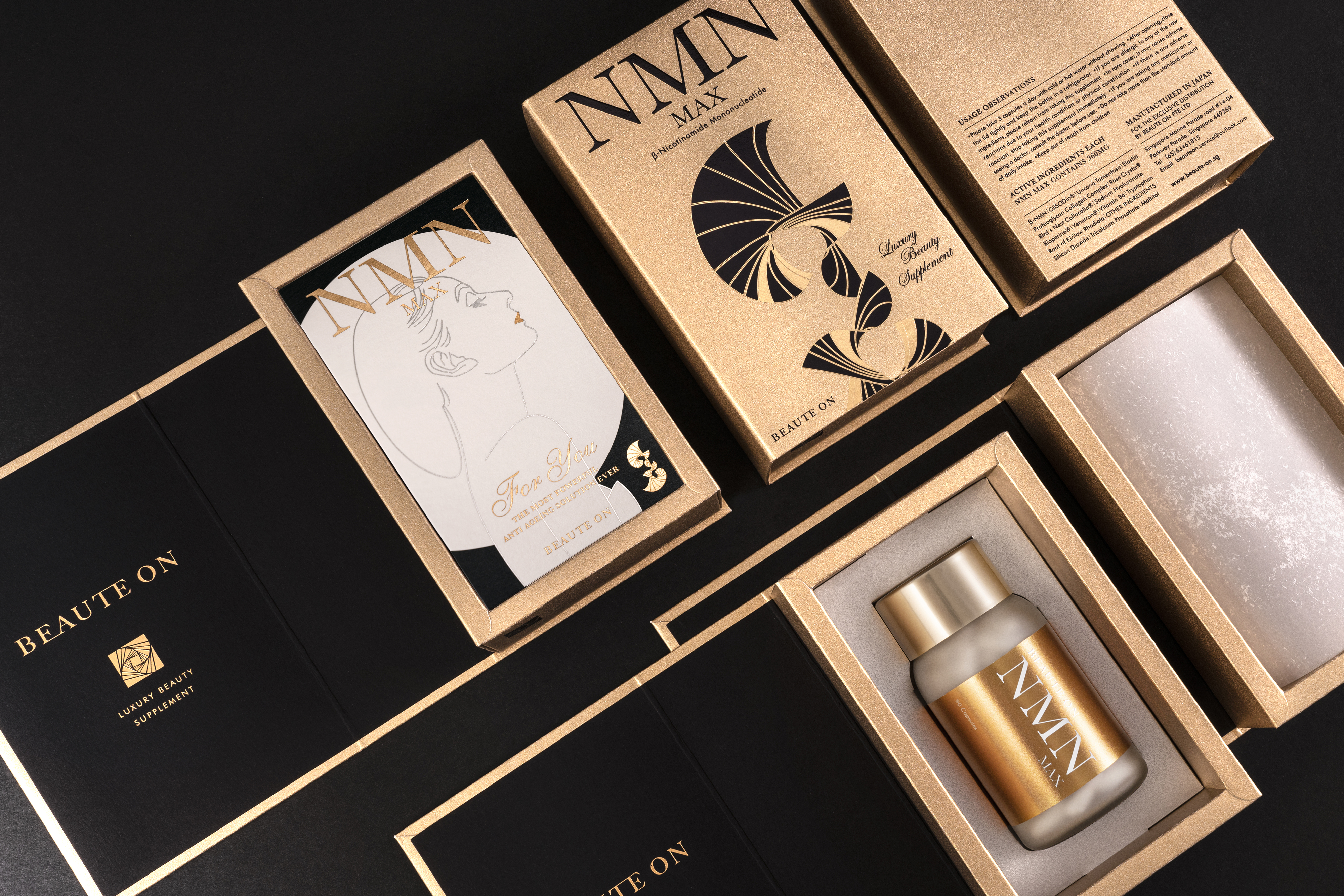 A card is included in the box, with a pattern is made of hot-stamped gold and matte silver, outlining an enchanting beauty under the bright moonlight on the front. The French word "BEAUTE", which symbolizes allure, beauty and nobility, is taken as the brand name. The NMN time capsule is presented on the reverse side, both of which are full of artistic visual effects, dramatically demonstrating the brand's commitment to bringing consumers the most advanced technology to travel through time and space, and to return to youthful vitality that stays.