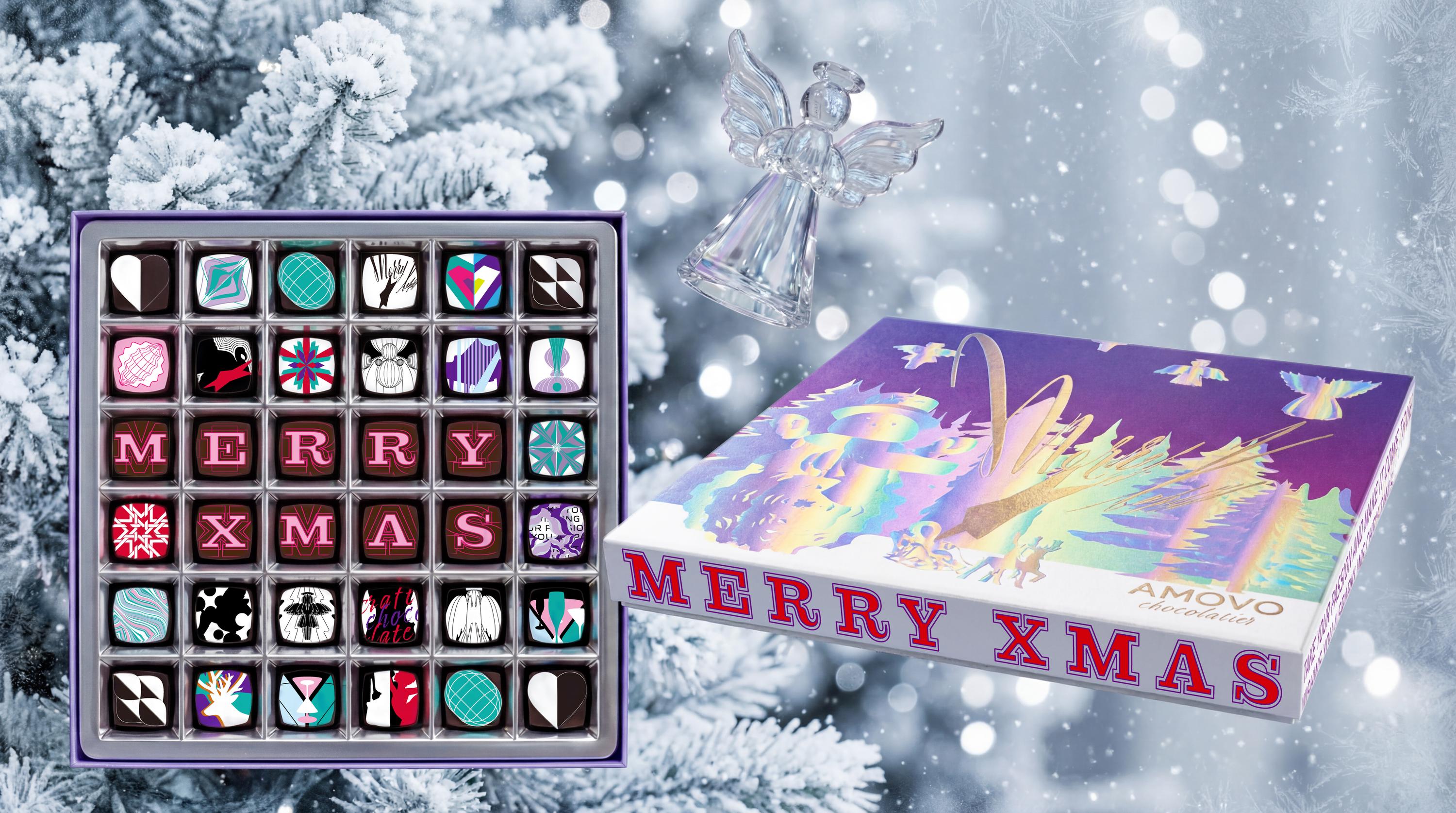 The body features a 30x30 cm grand thin box, housing 25-36 gem-like chocolates printed with Christmas imagery. Their rhythmic arrangement perfectly fuses modern geometric aesthetics with classical festive warmth, creating a melodic visual rhythm. It is not just a collection of colors, but a bold visual symphony dedicated to dreamers.