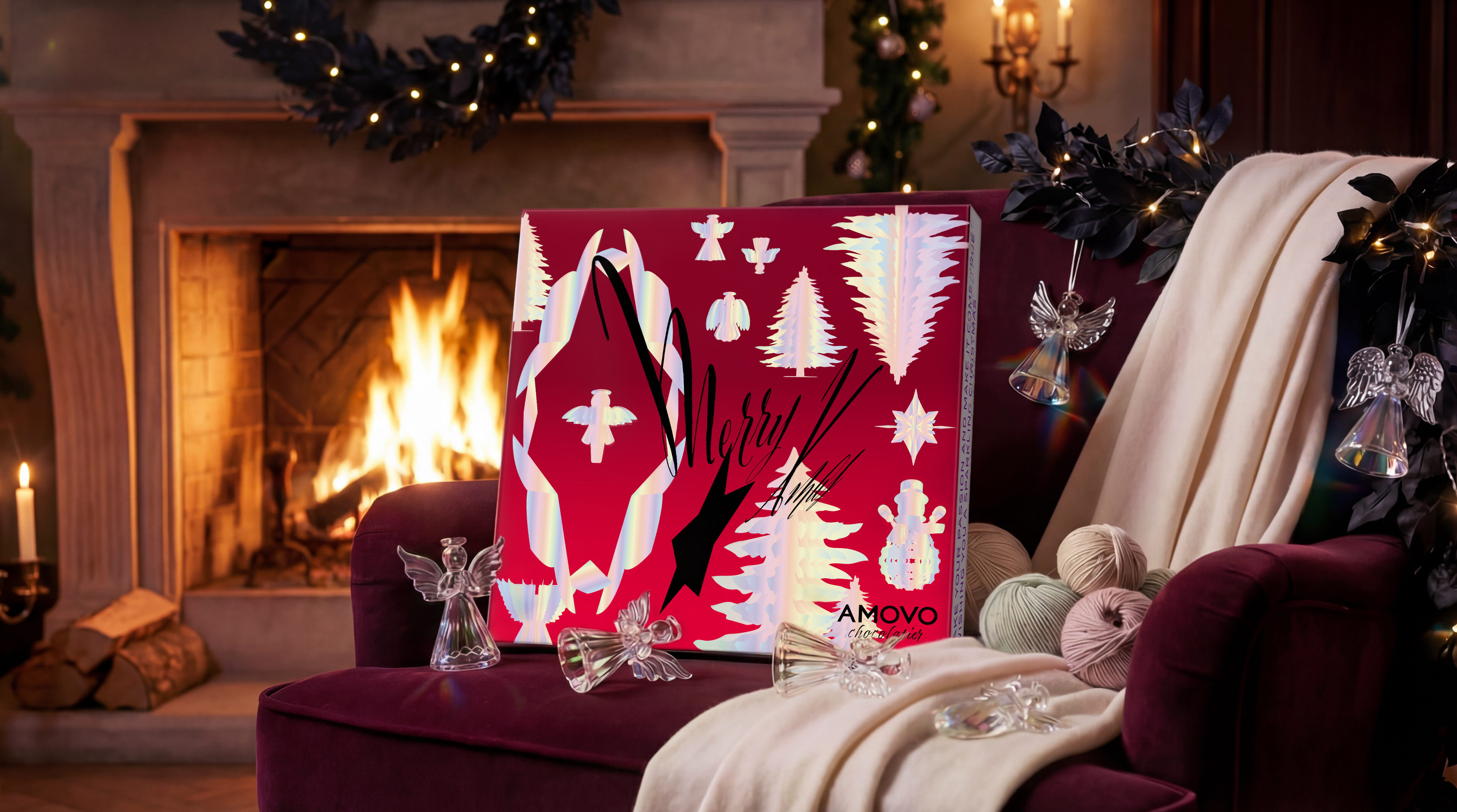 The body features a 30x30 cm grand thin box, housing 25-36 gem-like chocolates printed with Christmas imagery. Their rhythmic arrangement perfectly fuses modern geometric aesthetics with classical festive warmth, creating a melodic visual rhythm. It is not just a collection of colors, but a bold visual symphony dedicated to dreamers.